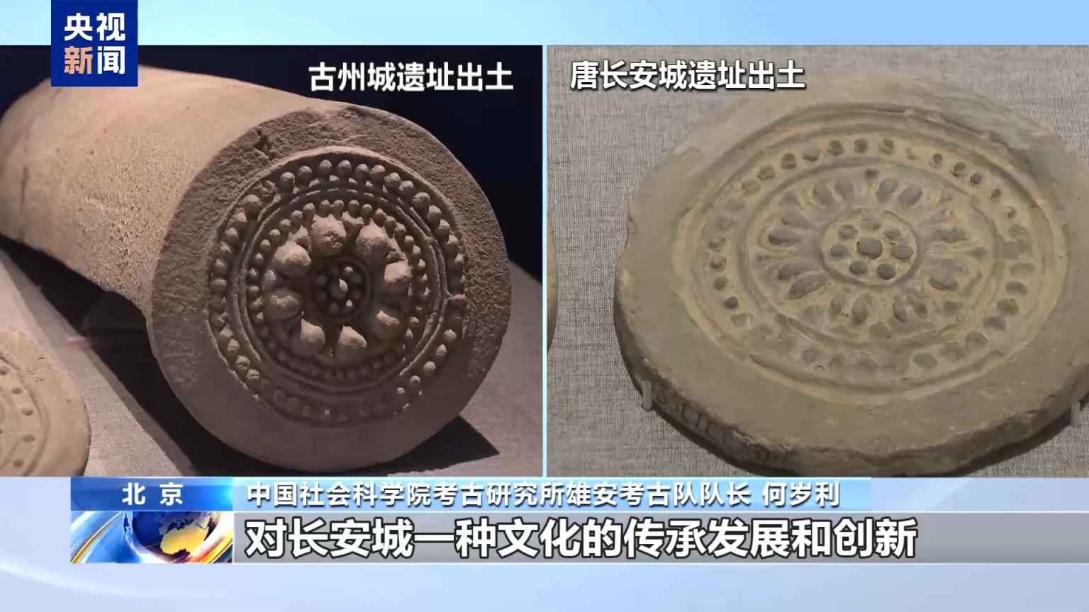 中国社会科学院考古研究所雄安考古队队长 何岁利:从整体的布局来说,跟长安城出土的莲花纹瓦当大同小异,都是核心是莲蓬,外围是莲瓣,再外围是联珠纹。但是古州城出土的瓦当出现了两圈的联珠纹,也说明在建筑材料的制作上,对长安城一种文化的传承、发展和创新,也展示出大国一统的局面。